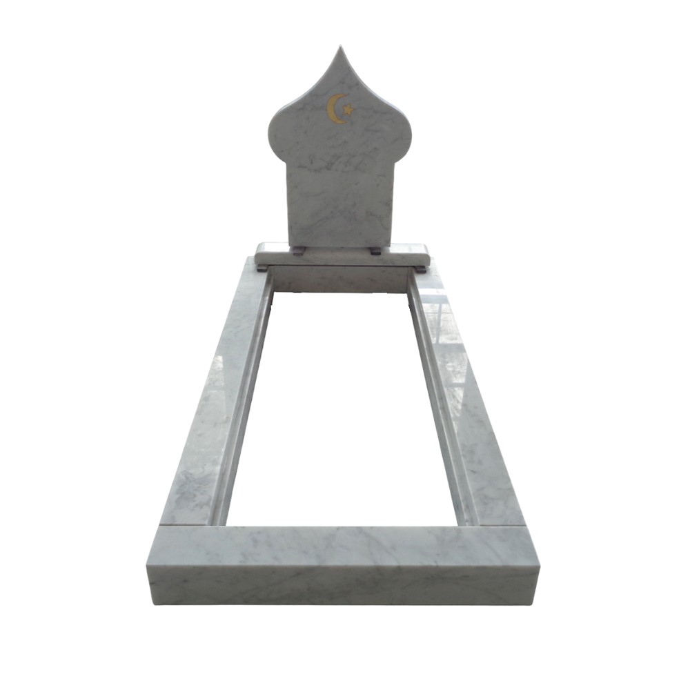 Vente directe usine en Chine Monument funéraire musulman en marbre blanc avec étoile et croissant, pour pompes funèbres musulmanes et marbreries.