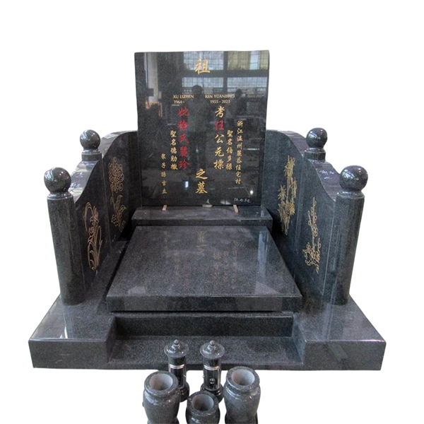 Pierre tombale chinoise en granit noir avec toit sculpté – Spécialiste et fabricant