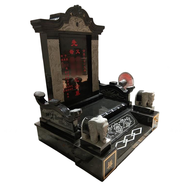 Achat direct usine Chine Pierre tombale style asiatique en granit noir avec toit