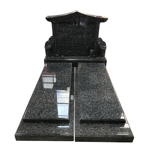 Chapelle funéraire familiale en granit noir avec deux vases et semelle – Fabricant direct en Chine.