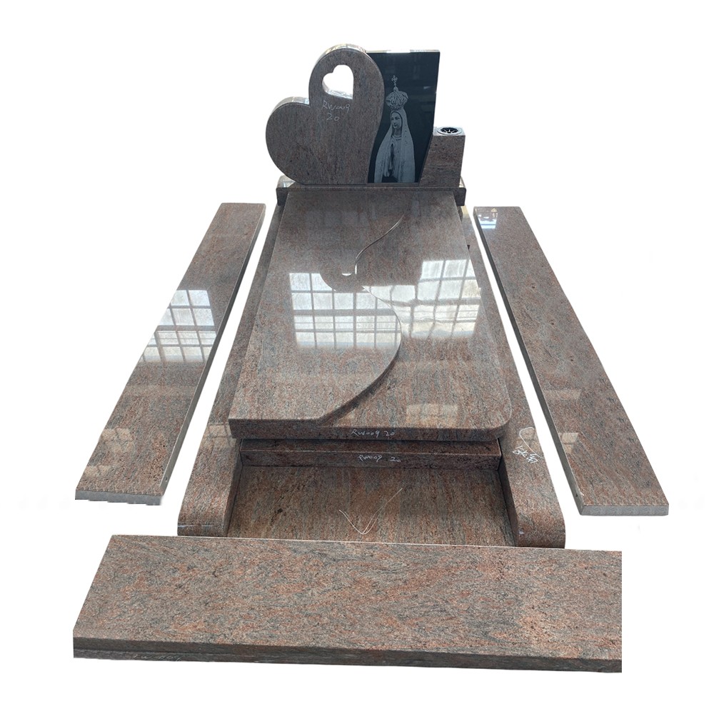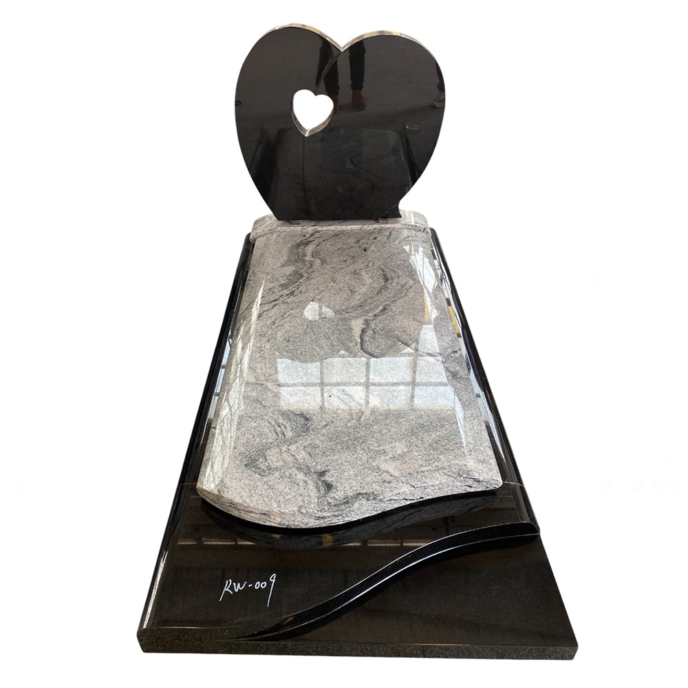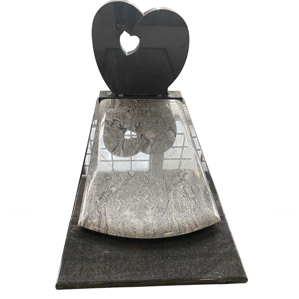 Pierre tombale moderne en granit bicolore Stèle avec découpe en forme de cœur, 200x100 cm