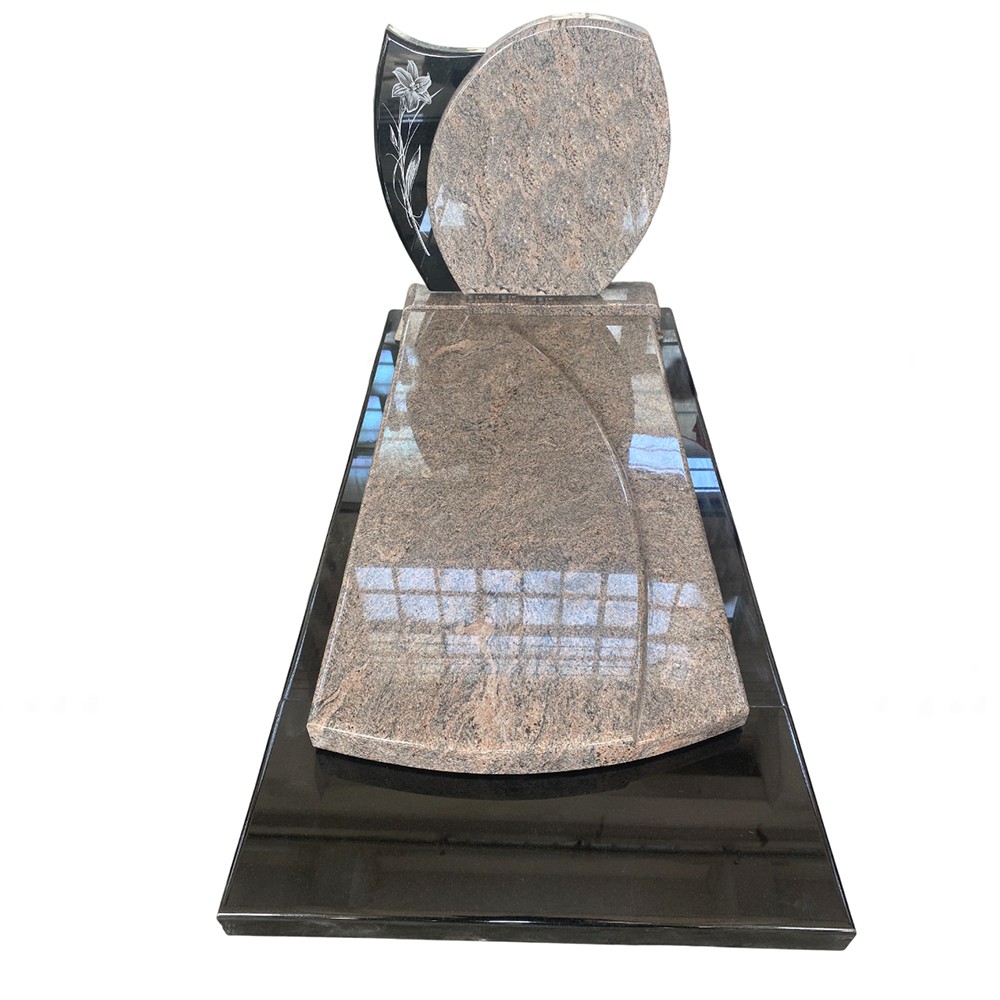 Grossiste chinois Monument funeraire moderne en granit Kinawa et noir fin avec sculpture sur steles avec semelle