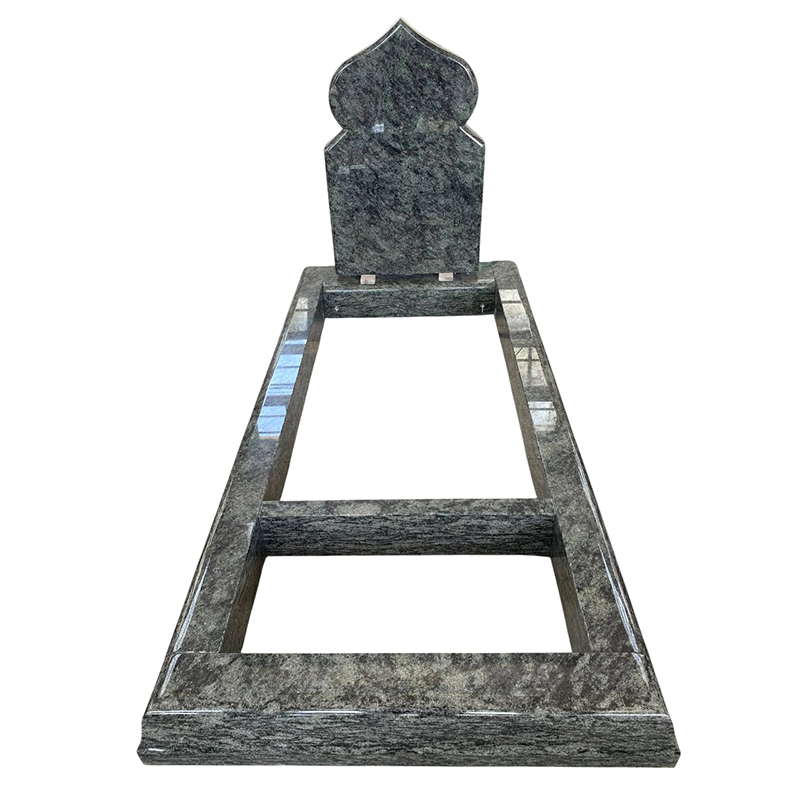 Pierre tombale musulmane avec jardinière à l’avant en granit Vert Olive 250 x 100 cm