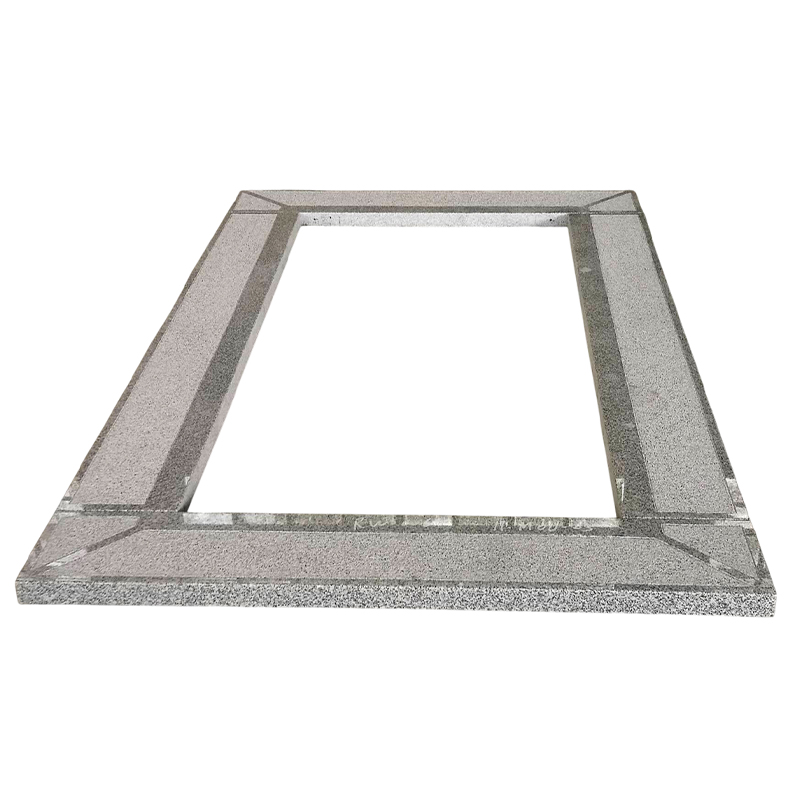 Direct usine Chine Semelles funéraires plates en granit Bleu Labrador HQ, finitions bouchardées, formats 240×140×5 cm et 250×150×5 cm. Fournisseur direct pour les professionnels des pompes funèbres et marbreries.