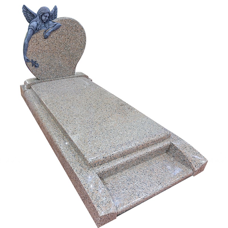 Pierre tombale francais en granit Rose hydra G635 avec petit coeur sur stele