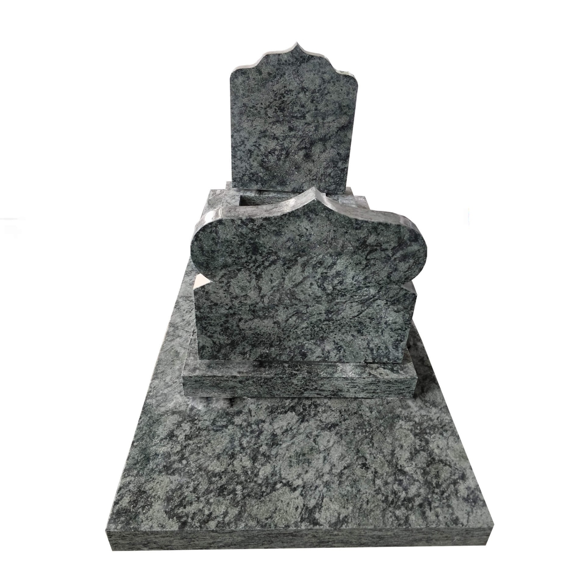 Monument funéraire musulmane en granit vert olive avec jardiniere et deux vases FM-22