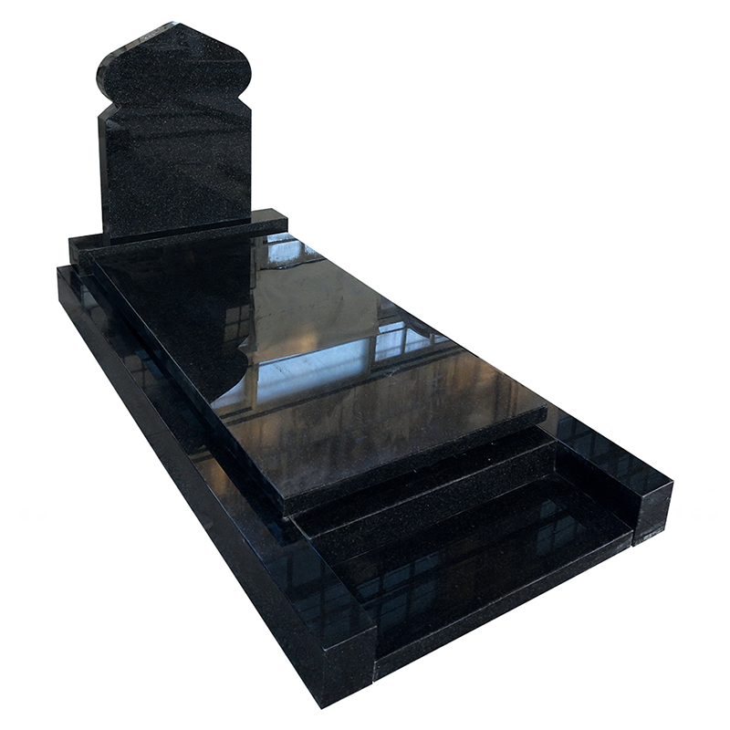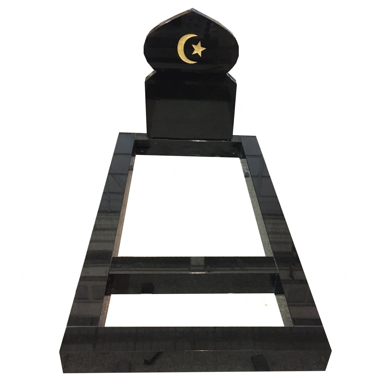 Monument funéraire mulsumane en granit noir fin gravure etoile croissant Granite Muslim funerary monument RW-GM-22