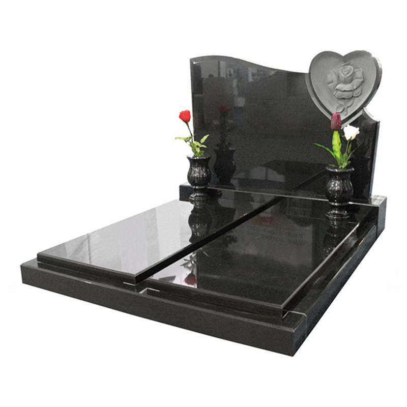 Pierre Tombale Double concession double avec vases en granit noir mf-69