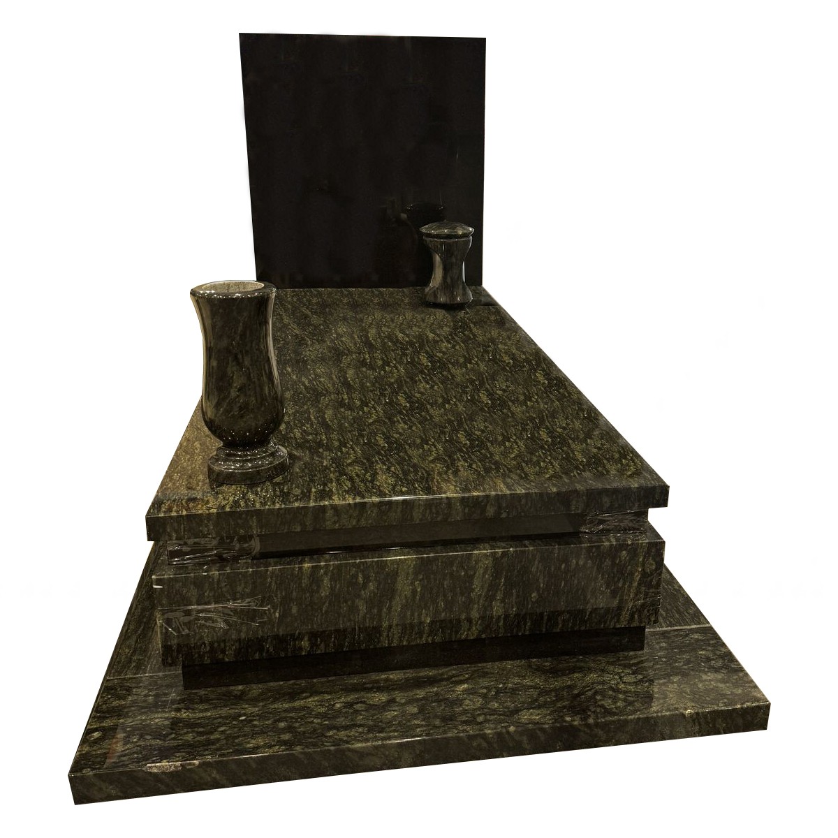 fabricant fournisseur chinois Monument funéraire en granit vert olive dimensions 200x100cm avec vases