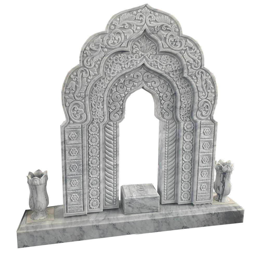 Stèle Pierre tombale musulmane avec deux vases en marbre blanc FM-37