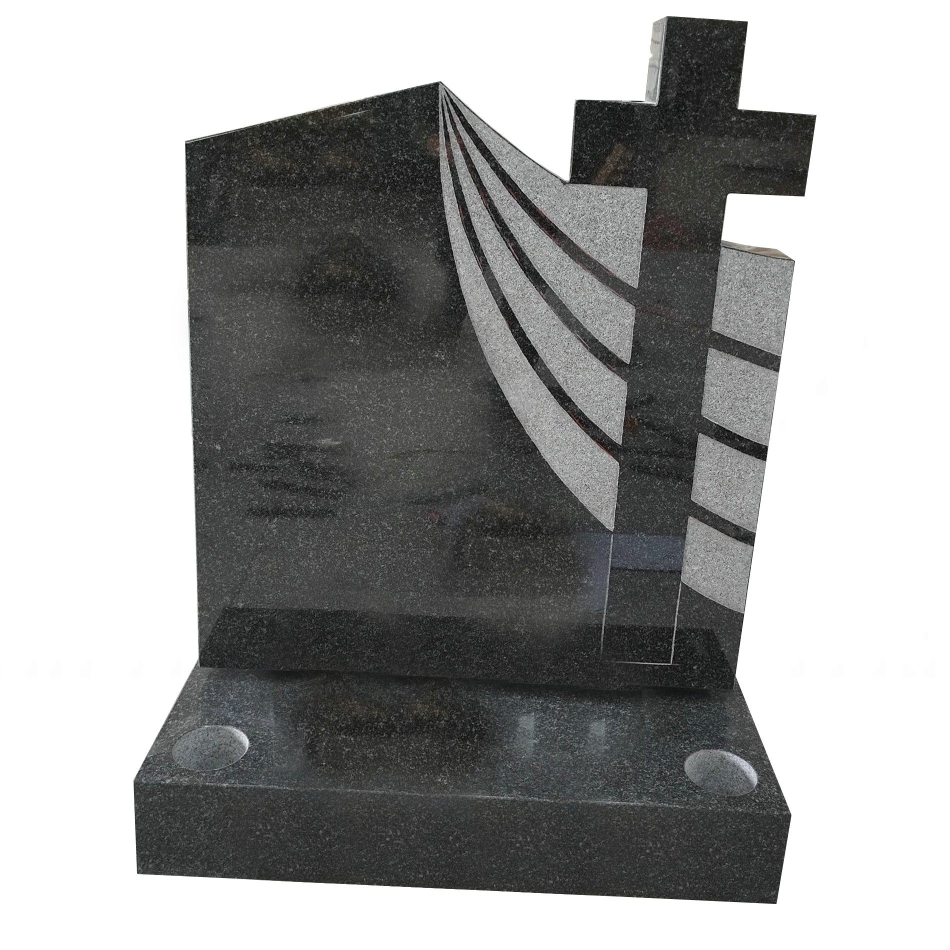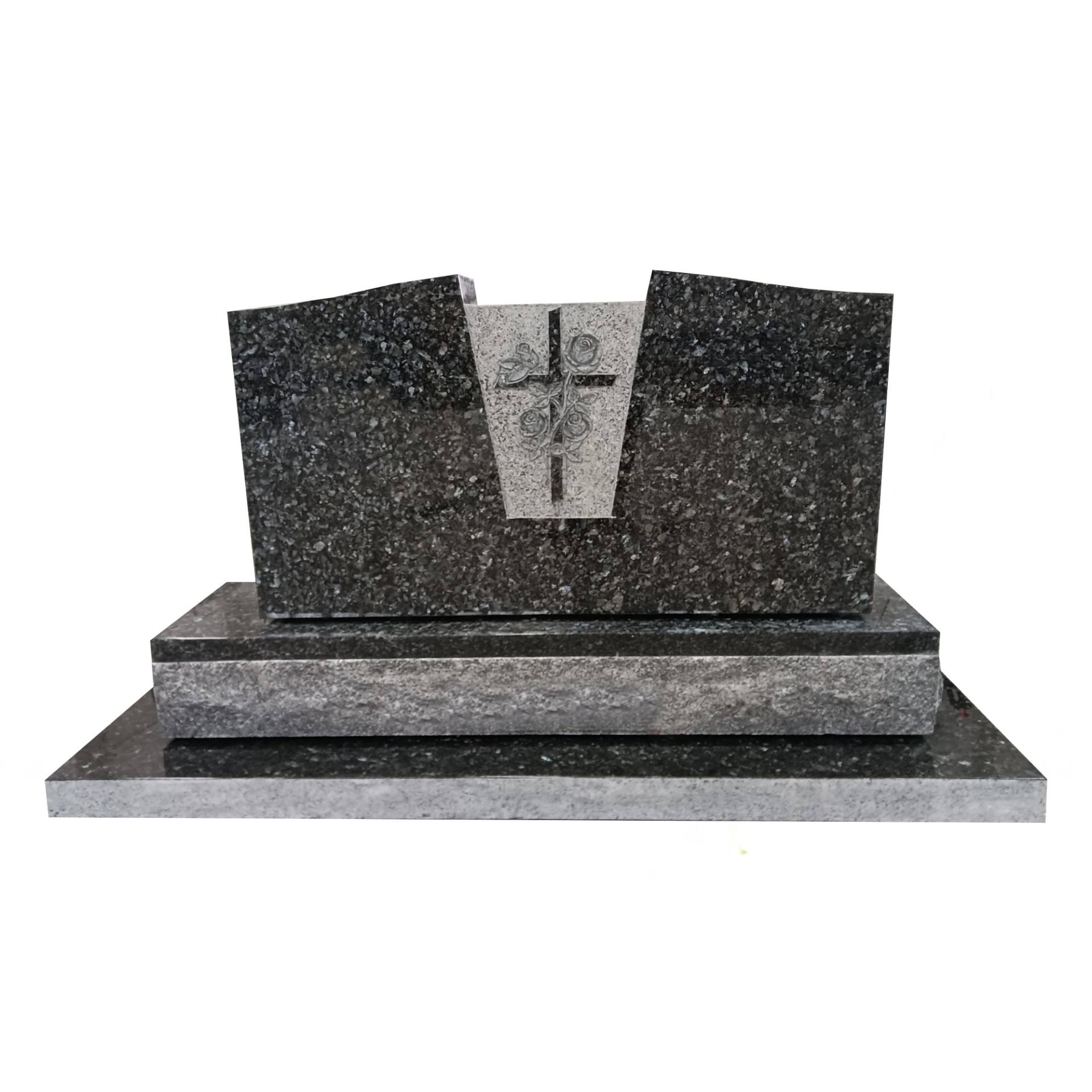 Headstone monument Serp Top with carving croos in Blue Pearl Granite