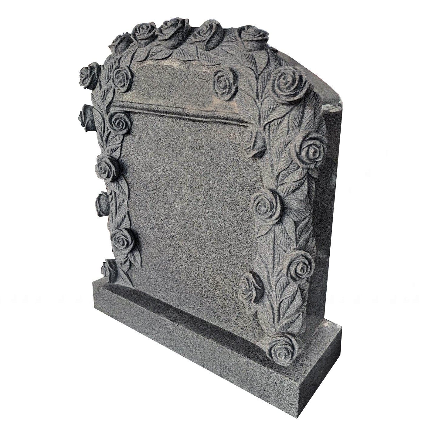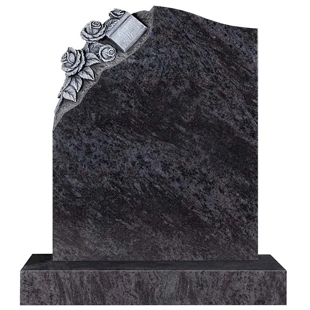 Elegant Granite Upright Headstone with Rose Carving in massblue granite