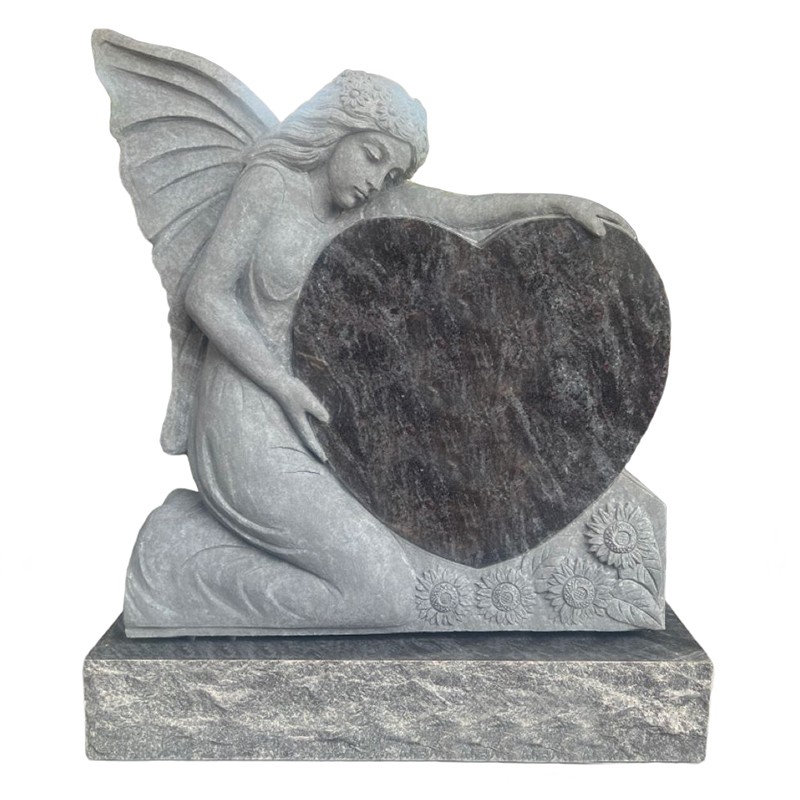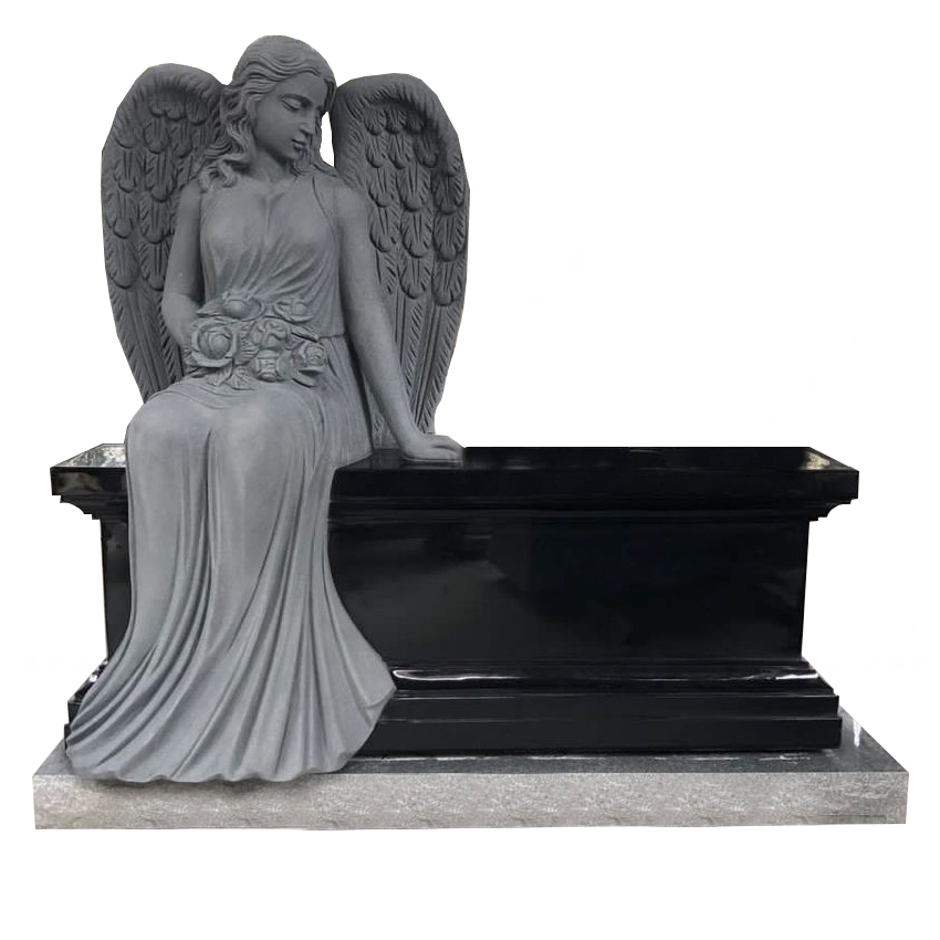 sculpte beautifull Angel bench Statue Headstone in Grey and black granite with niches