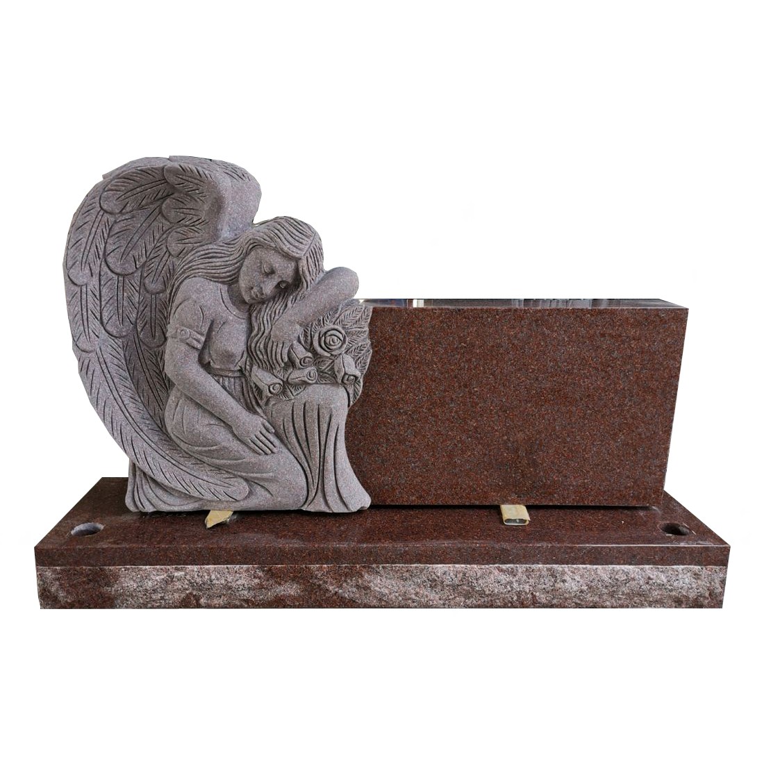 Red Granite Carving Leaning Angel with wing Monument Headstone