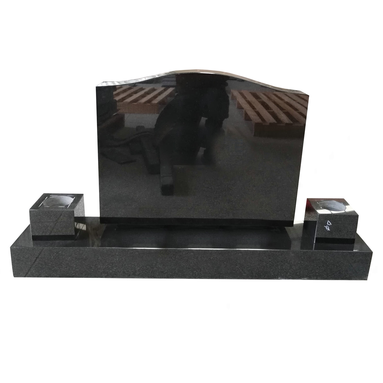 Modern Headstone Serp Top with a Cored two Vase black granite