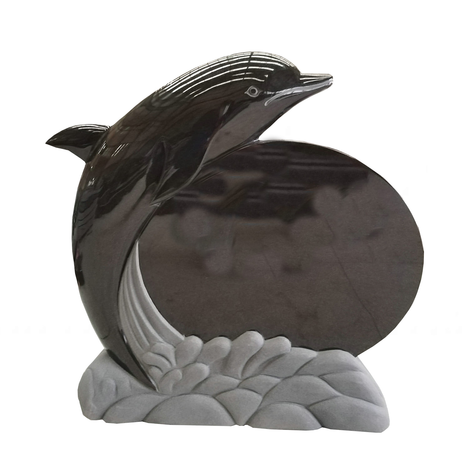 Modern Dolphin Shape Headstone fish Pet Memorial Statue in black granite