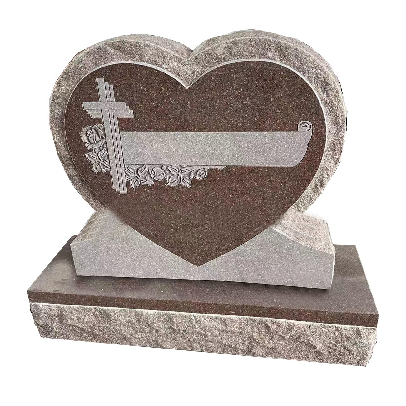 Simple Heart Bhama Polished Granite Headstone Monument Carving Flowers
