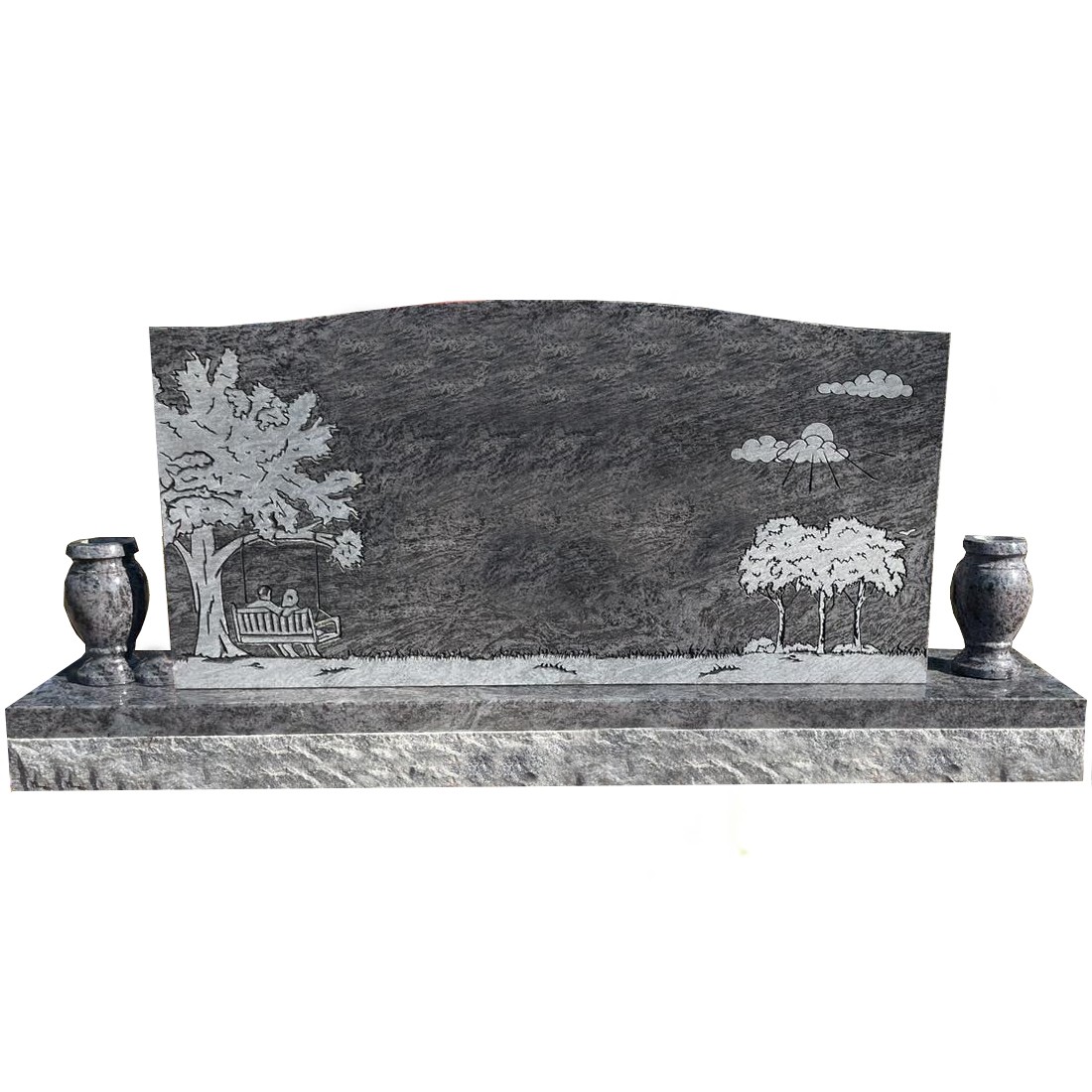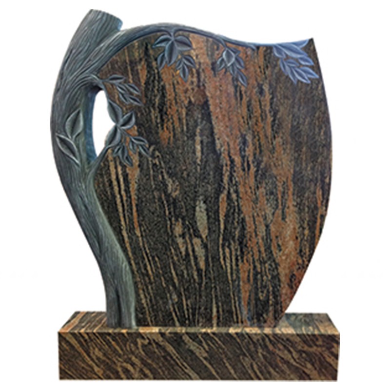 Upright Wave Top memorial monument with etching tree Paradiso granite
