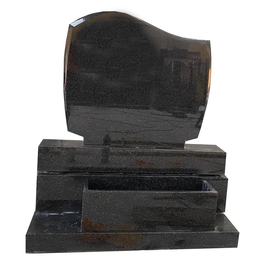 Serp Top upright headstone monument with a Cored Vase paradiso granite