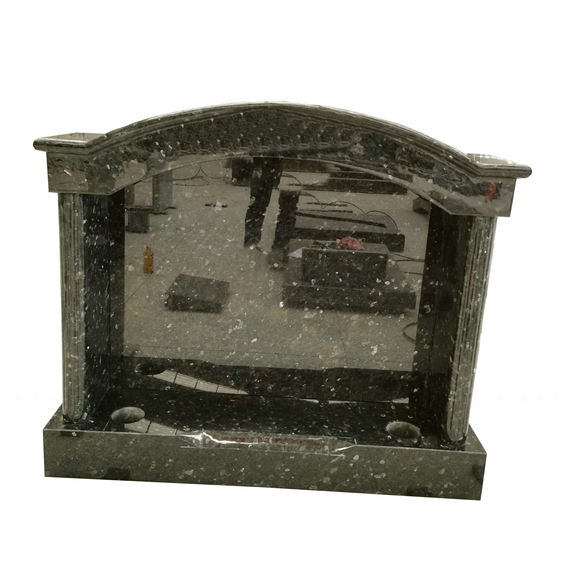 Serp Top with Fluted Columns in blue pearl granite upright Headstone