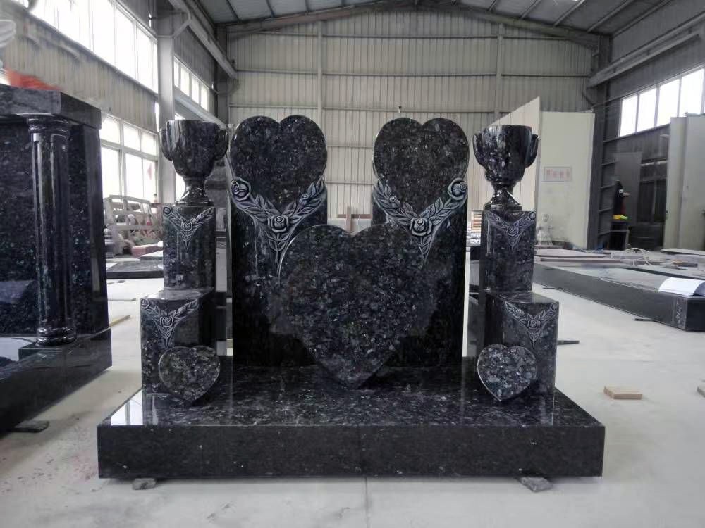 Ce magnifique monument funéraire, réalisé en granit Labrador HQ de première qualité, offre un équilibre parfait entre élégance et durabilité. La pierre tombale à double cœur est finement sculptée, ornée de gravures délicates de roses, symbolisant l'amour