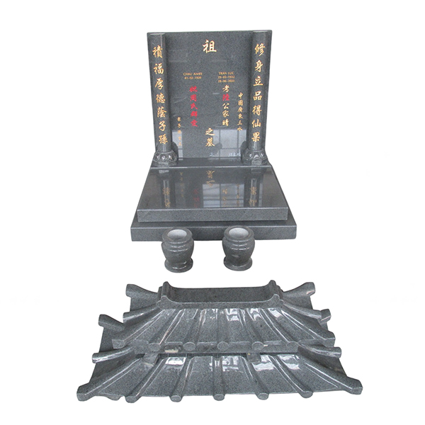Pierre tombale chinoise en granit noir avec toit sculpté – Spécialiste et fabricant