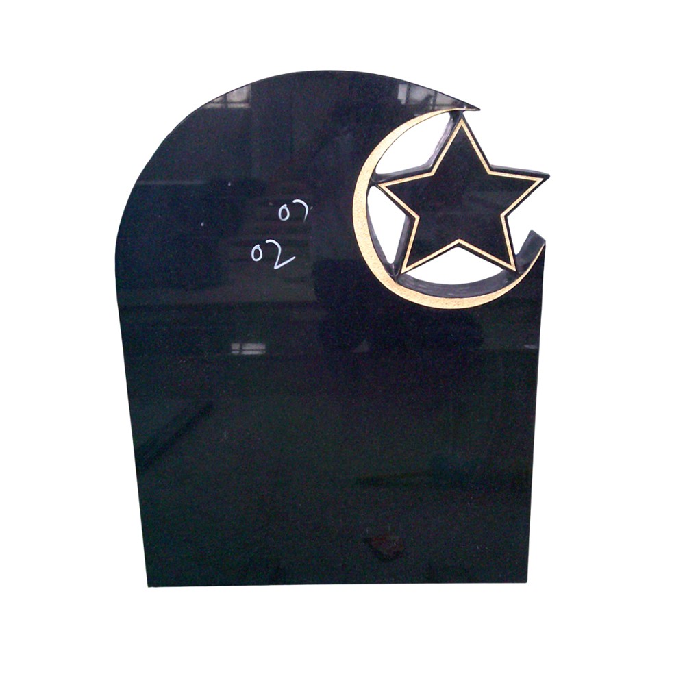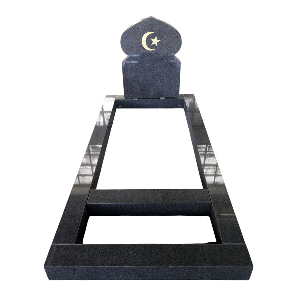 Fabricant certifié en Chine Monument funéraire musulman en granit noir fin avec gravure étoile et croissant, pour pompes funèbres musulmanes et marbreries.