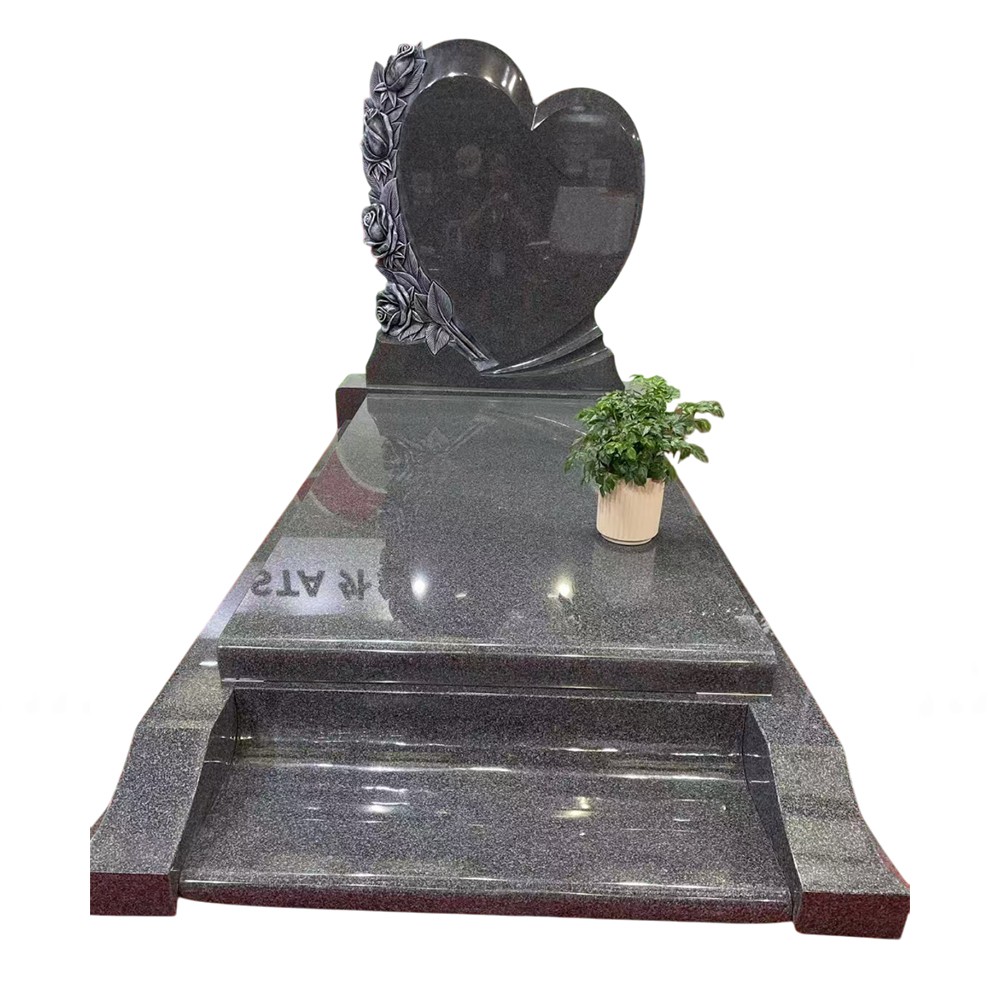 Monument funéraire moderne Granit noir G654, stèle cœur et motifs floraux