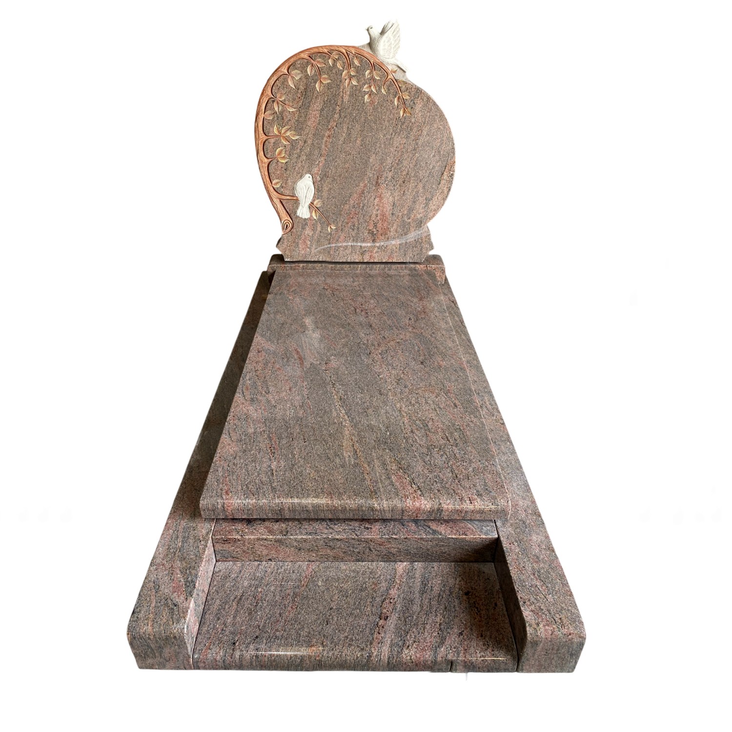 Pierre tombale moderne en granit bicolore Stèle avec découpe en forme de cœur, 200x100 cm