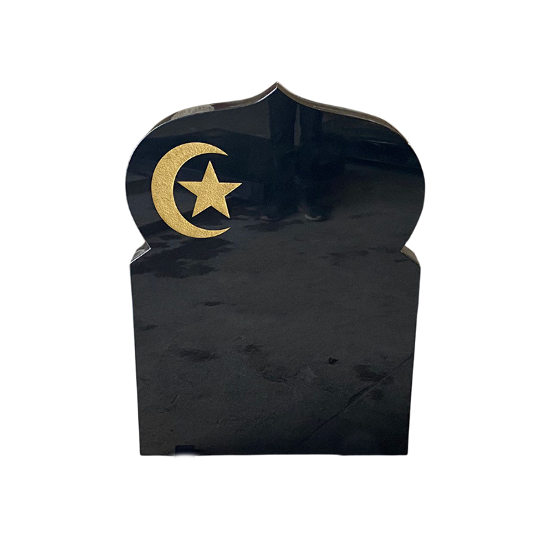 Fabricants chinois de Stèle Monument funéraire musulman avec étoile et croissant en granit Noir Fin