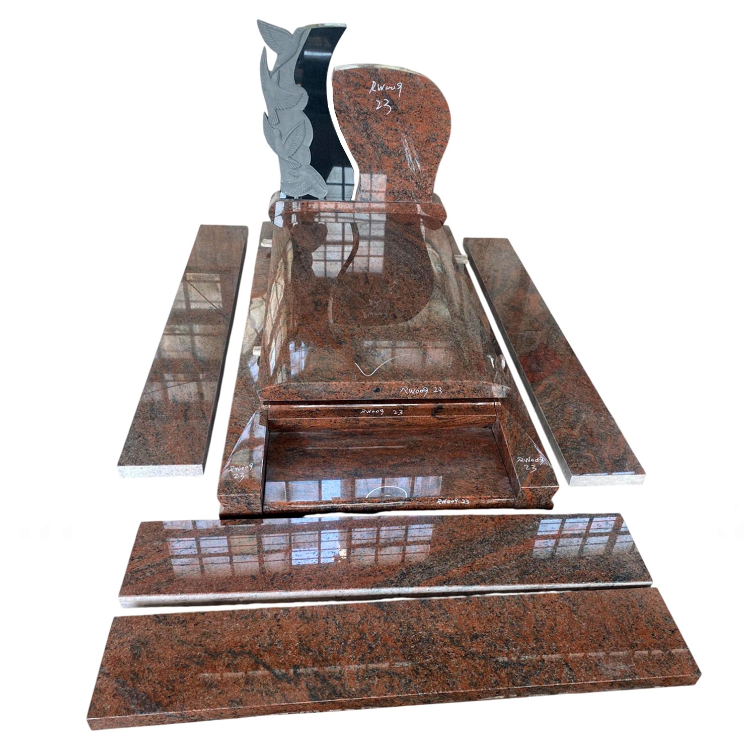 Grossiste chinois Monument funeraire moderne en granit Kinawa et noir fin avec sculpture sur steles avec semelle
