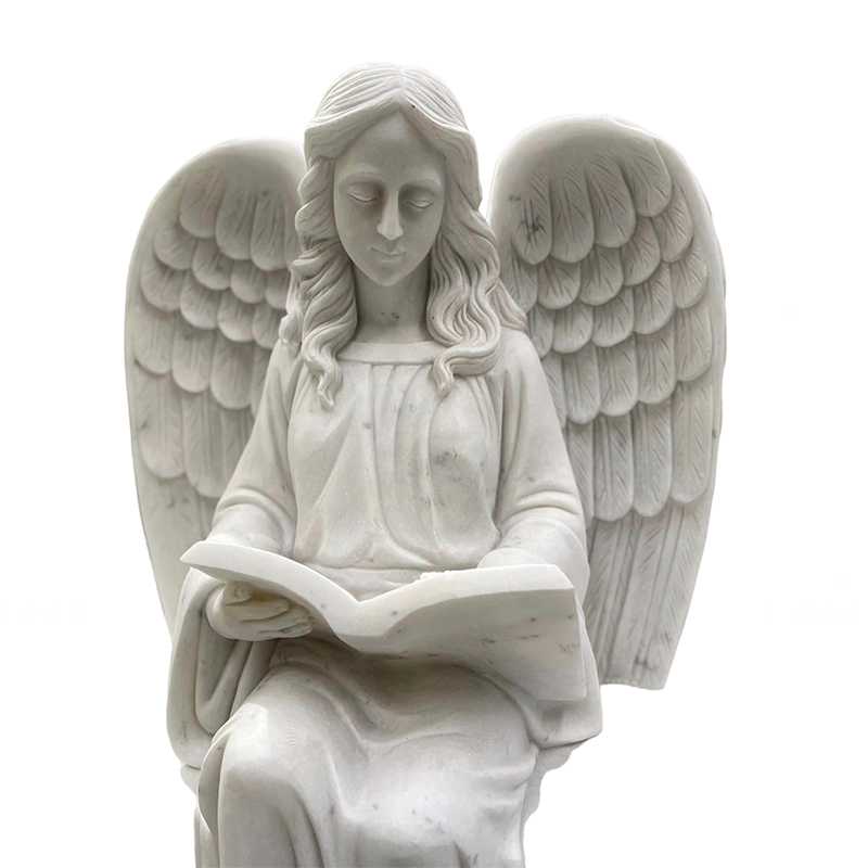 sculpture elégante d'ange en marbre tenant un livre MS-02