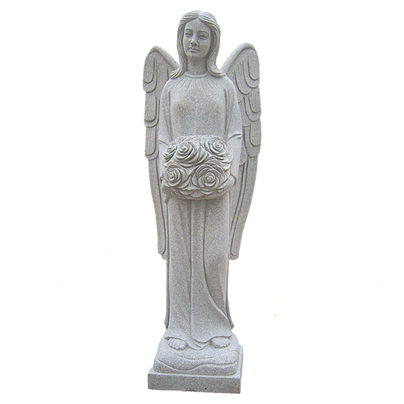 Sculpture en granit d'un ange avec des ailes et des fleurs pour cimetières et jardins MS-19