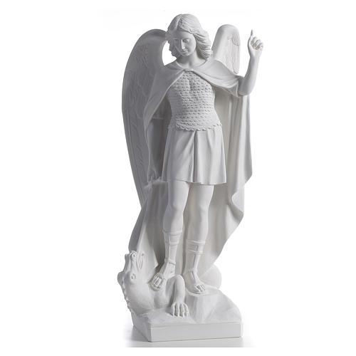 Sculpture en marbre blanc sculptée à la main de l'archange Raphaël avec son épée, pour cimetières et jardins MS-14