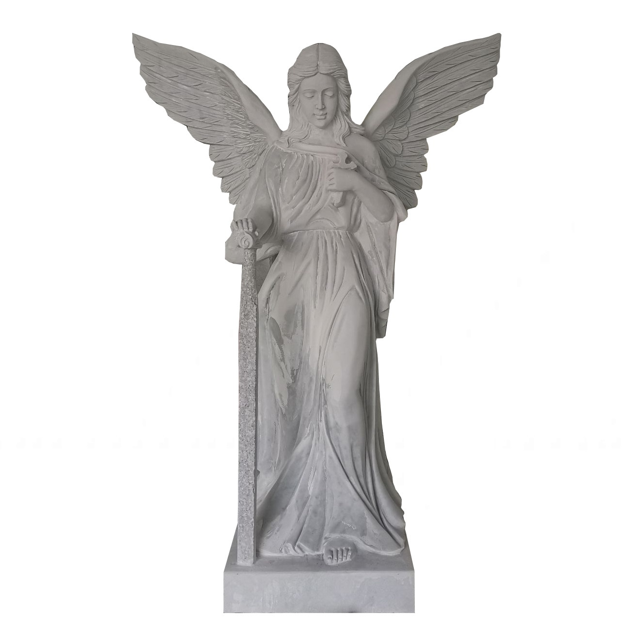 Sculpture d'un ange avec ailes et croix dans les mains pour cimetières et jardins MS-18