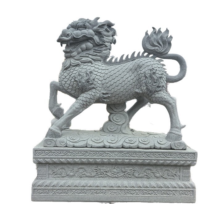 Luxury Pair of Carved Stone Qilin Statues (Chinese Unicorn) in White Marble and Natural Blue Stone – Ideal for Villa, Garden, Hotel & Home Entrance Décor