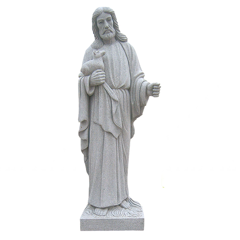 Sculpture traditionnelle de Jésus en granit avec un agneau pour les cimetières et jardins MS-17