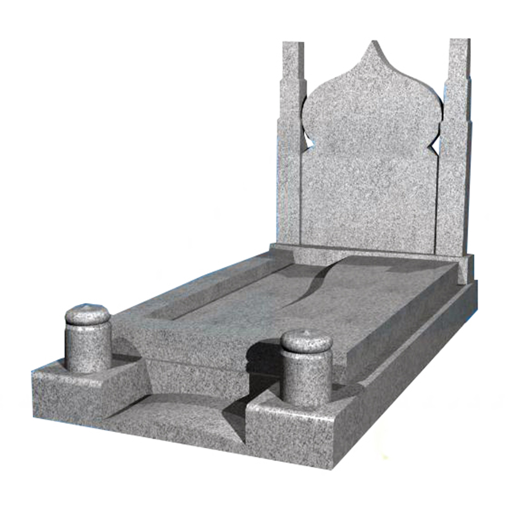 Pierre tombale Musulman avec 2 minarets et tombale et 2 vases en Granit Gris G603 FM-05