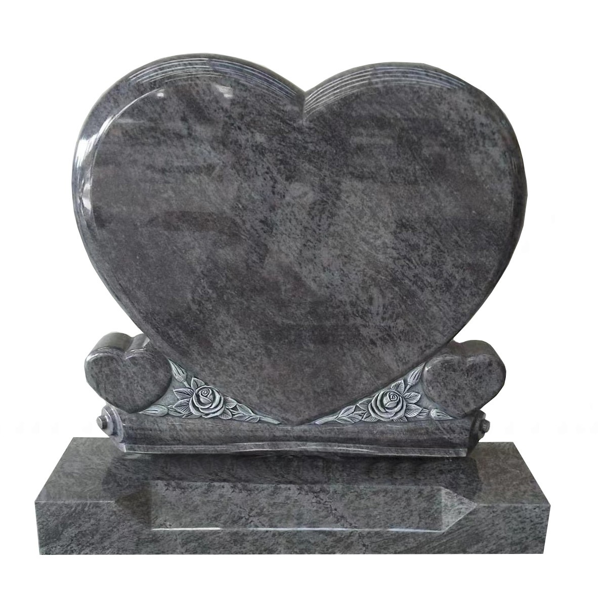 Simple Heart Bhama Polished Granite Headstone Monument Carving Flowers