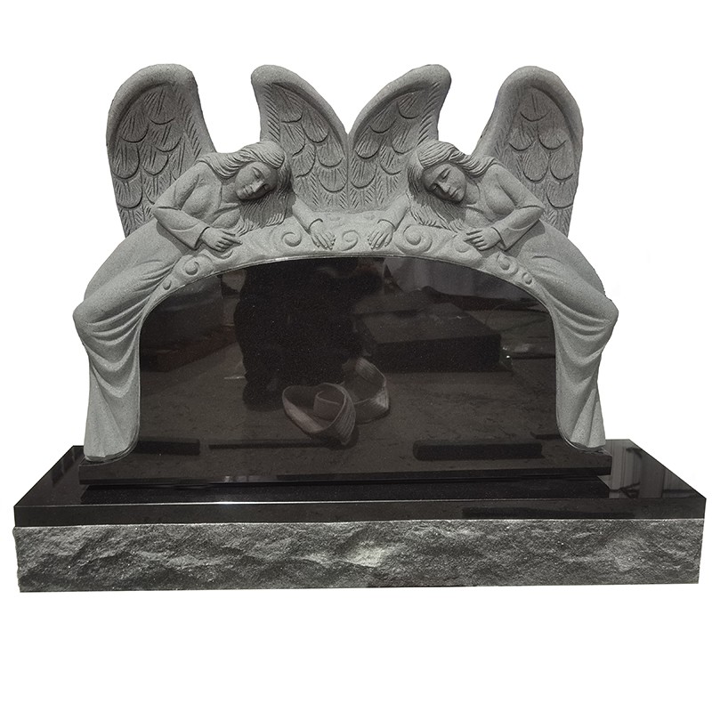 Custom Jet Black Granite Double Angel Headstone Double Weeping Angel Headstone