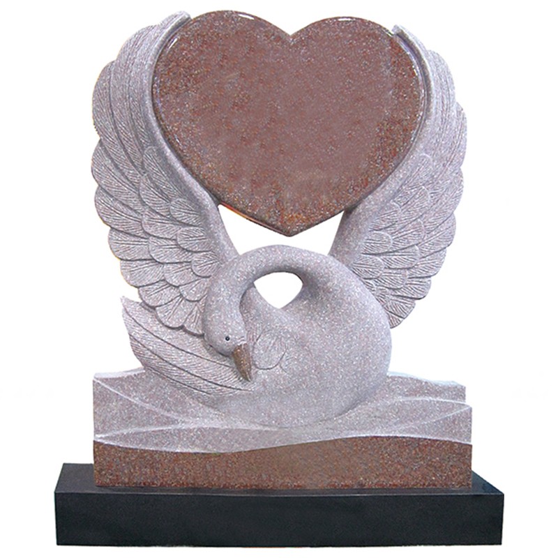 Beautiful and elegant swan Headstone Monument in red and black Granite