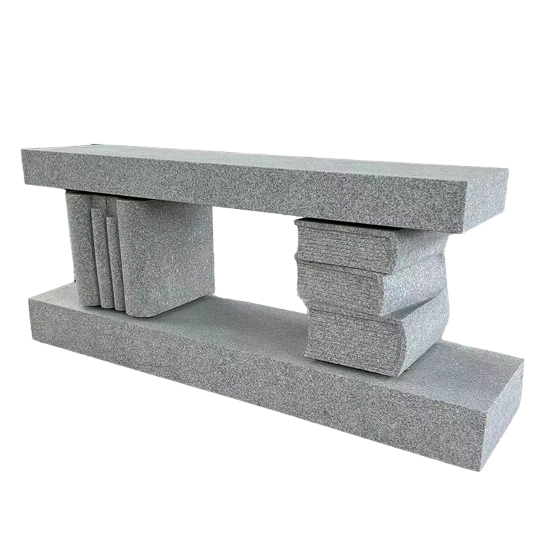 Memorial Park Bench Cemetery monument Grey G603 Granite with carved book