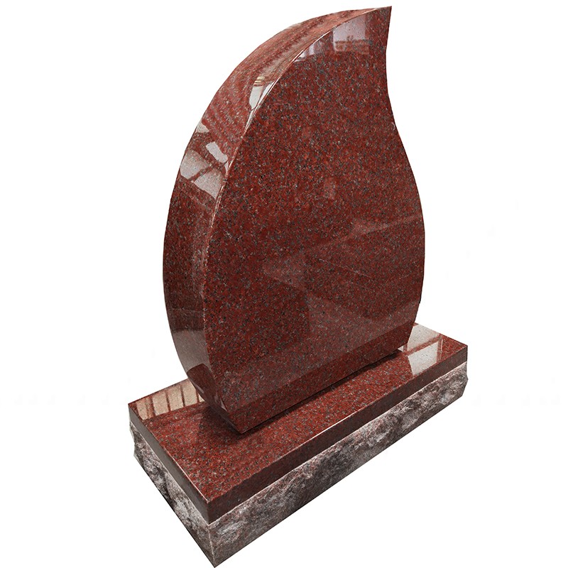 Modern upright headstones tear drop design in red granite
