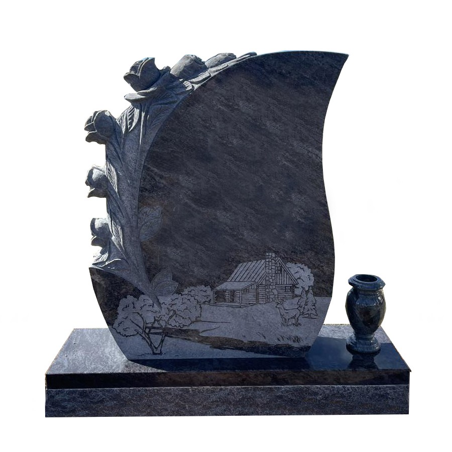 Tear Drop carving Roses Bahama blue granite Upright headstones monument with vase