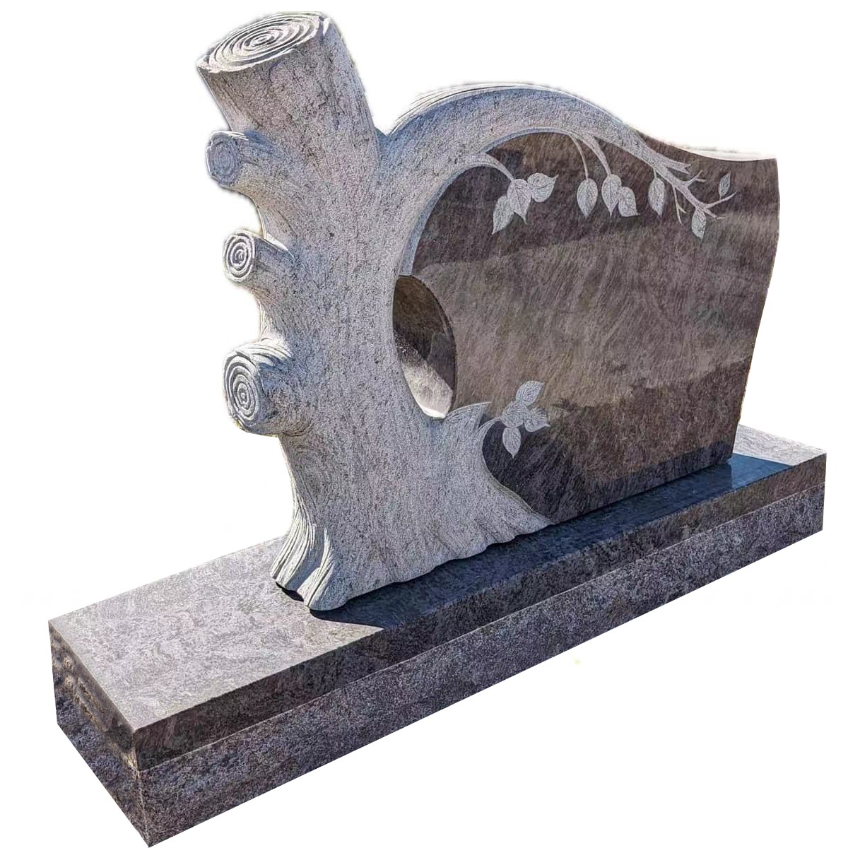 custom upright headstone paradiso Granite with carved Tree trunk and leaves on top RW-GH-236