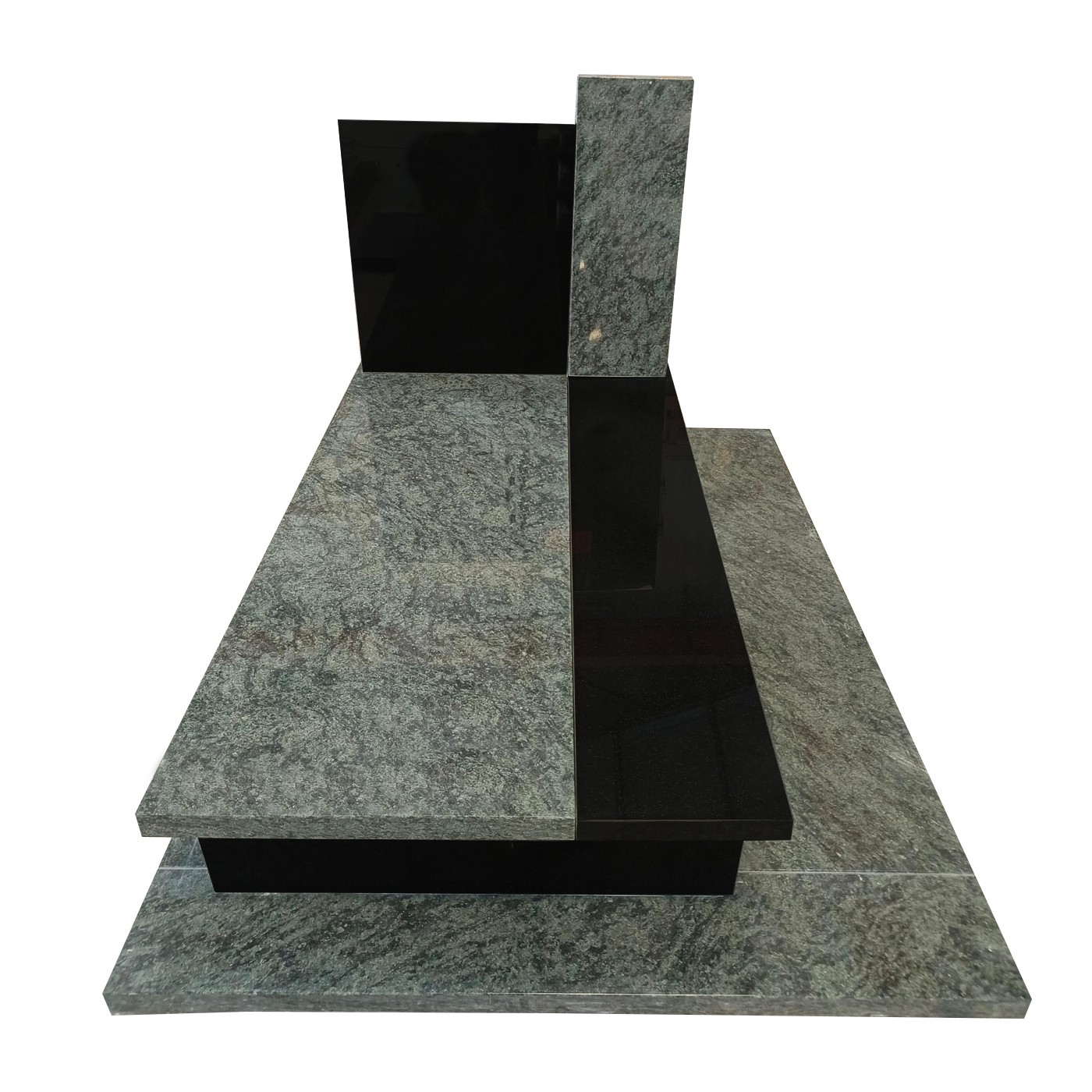 Monument funeraire longue avec semelle en granit vert olive et noir fin