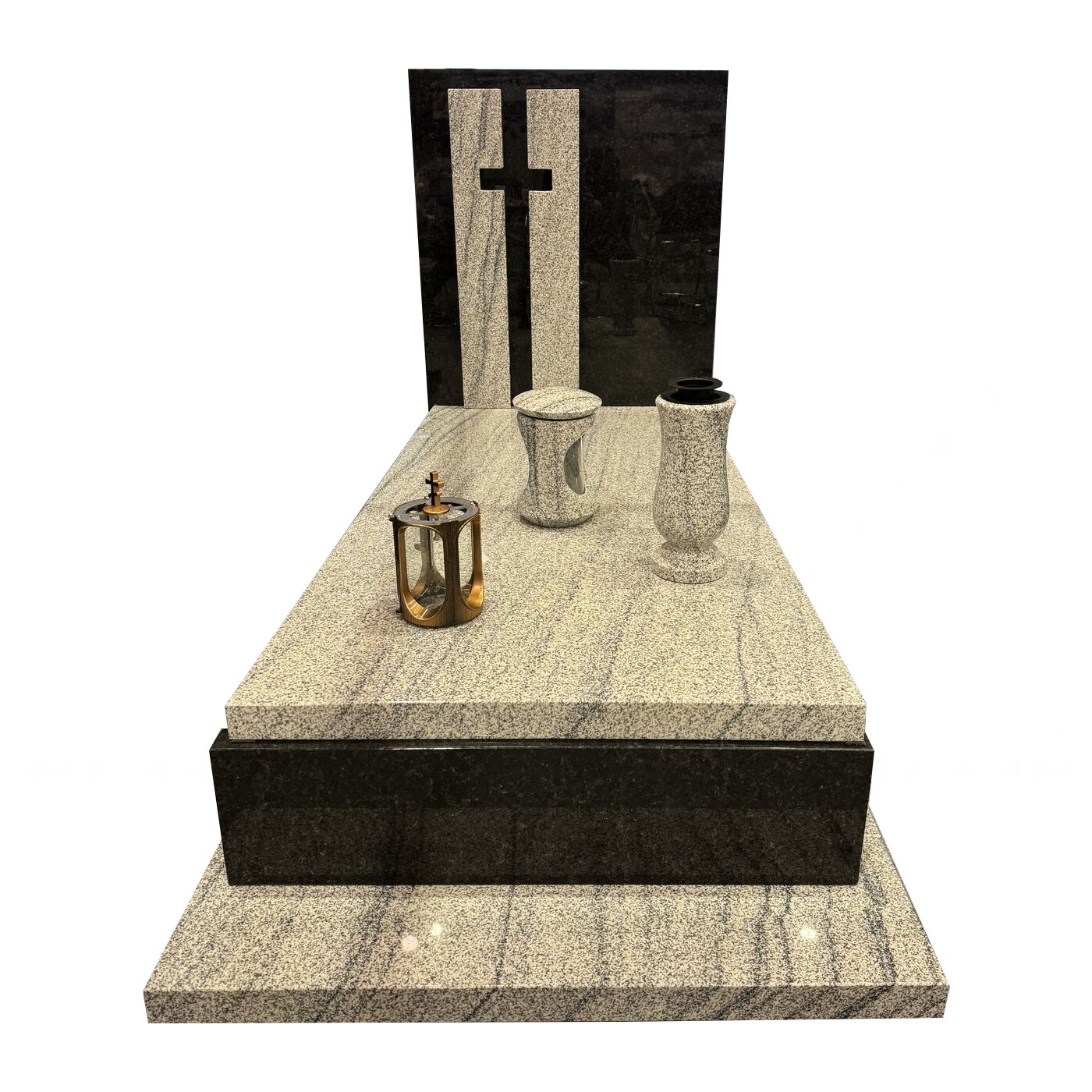 fabriquant Monument funéraire Design moderne en granit avec vases et lanternes funéraires